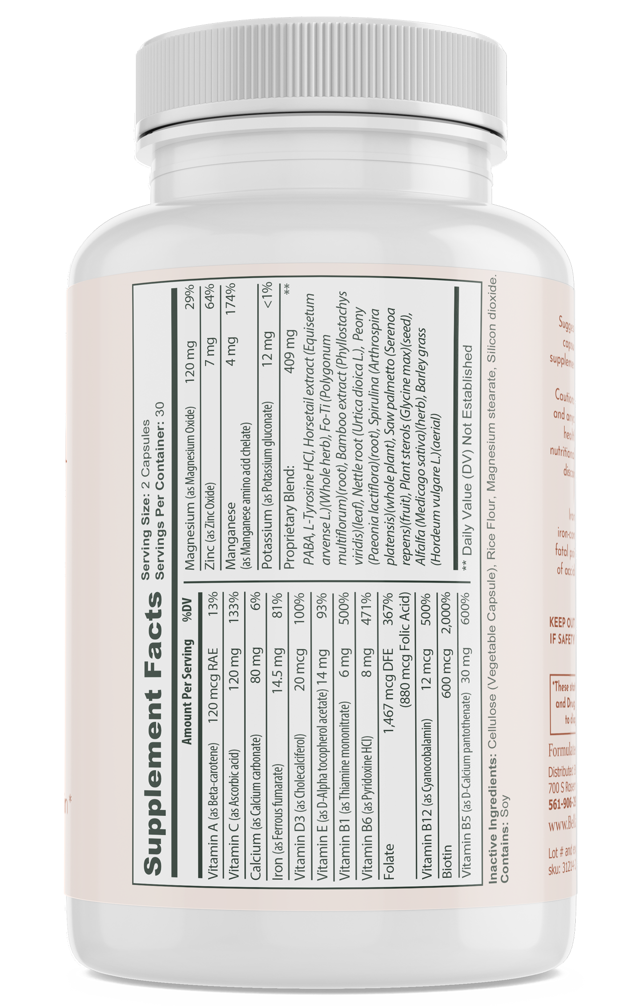 Our Hair, Skin, and Nails supplement is crafted with a thoughtful blend of vitamins that are commonly associated with beauty and wellness. This natural combination of vitamin B6, folic acid, biotin, and vitamins C, D, and E offers support for those looking to enhance their daily nutrient intake.